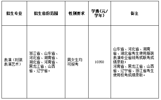 3.山东省、河北省、湖南省、湖北省考生:认可湖北省、湖南省服装表演专业统考成绩,认可山东省、河北省服装表演专业联考成绩。以上省份使用省统考或联考成绩录取;